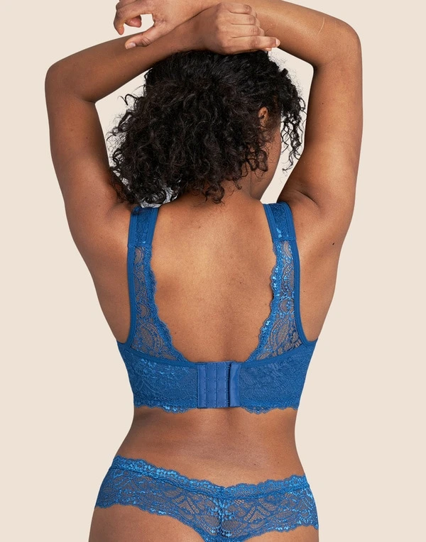 Unser unwattiertes Spitzen-Bralette „Eliana“ im semitransparenten Look kombiniert Bequemlichkeit mit Sexyness – ganz bügellos!