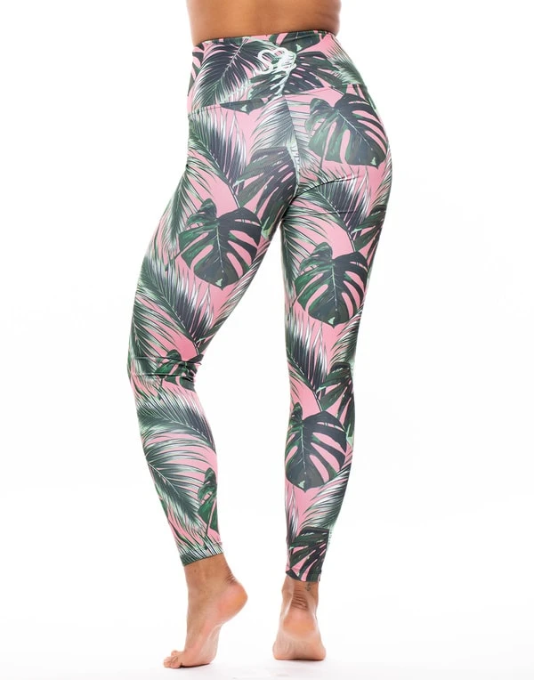 Leggings - Farbe: dunkelrosa mit grünem Palmenprint