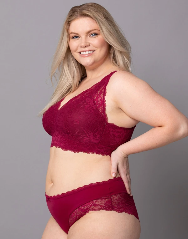 Kombiniere Panty „Suki“ bordeaux mit Bralette „Suki“ bordeaux.