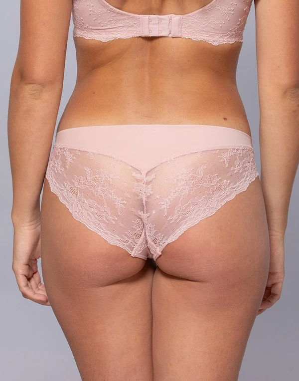 Unser Slip „Lucy“ kombiniert sinnliche Spitze mit weichem Stoff in einem hübschen rose-Farbton – passend zu unserem luftig-lockerem Spacer-BH „Lucy“!