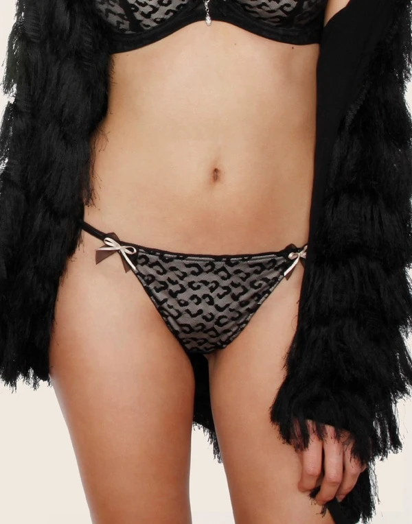 Mit unserem Stringtanga „Leona“ kannst Du Deine wilde Seite zeigen und gleichzeitig pure Eleganz ausstrahlen. Das Design in geheimnisvollem Schwarz im Leo-Look wird mit einem zarten Roségoldton kombiniert.